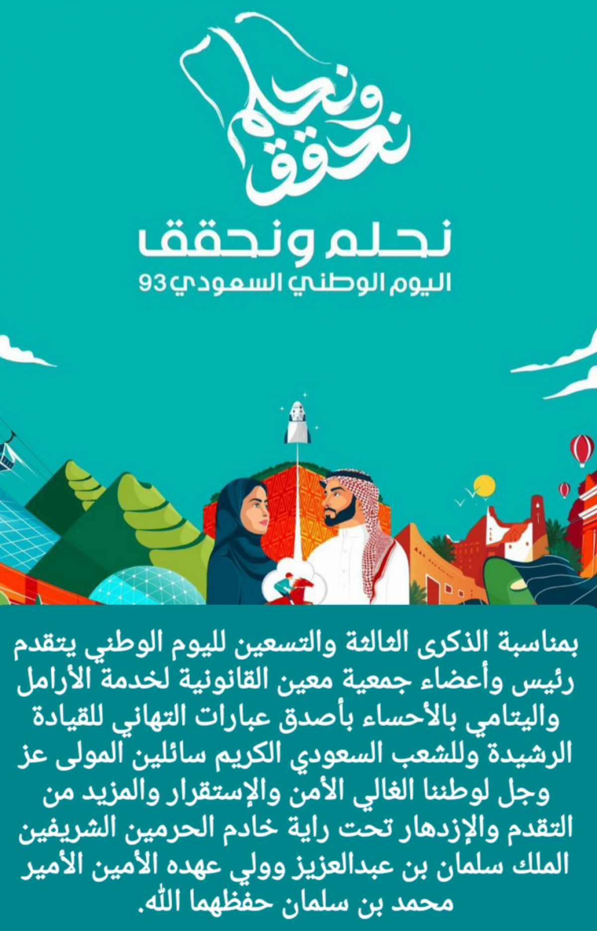 تهنئة الجمعية بمناسبة الذكرى الثالثة والتسعين لليوم الوطني